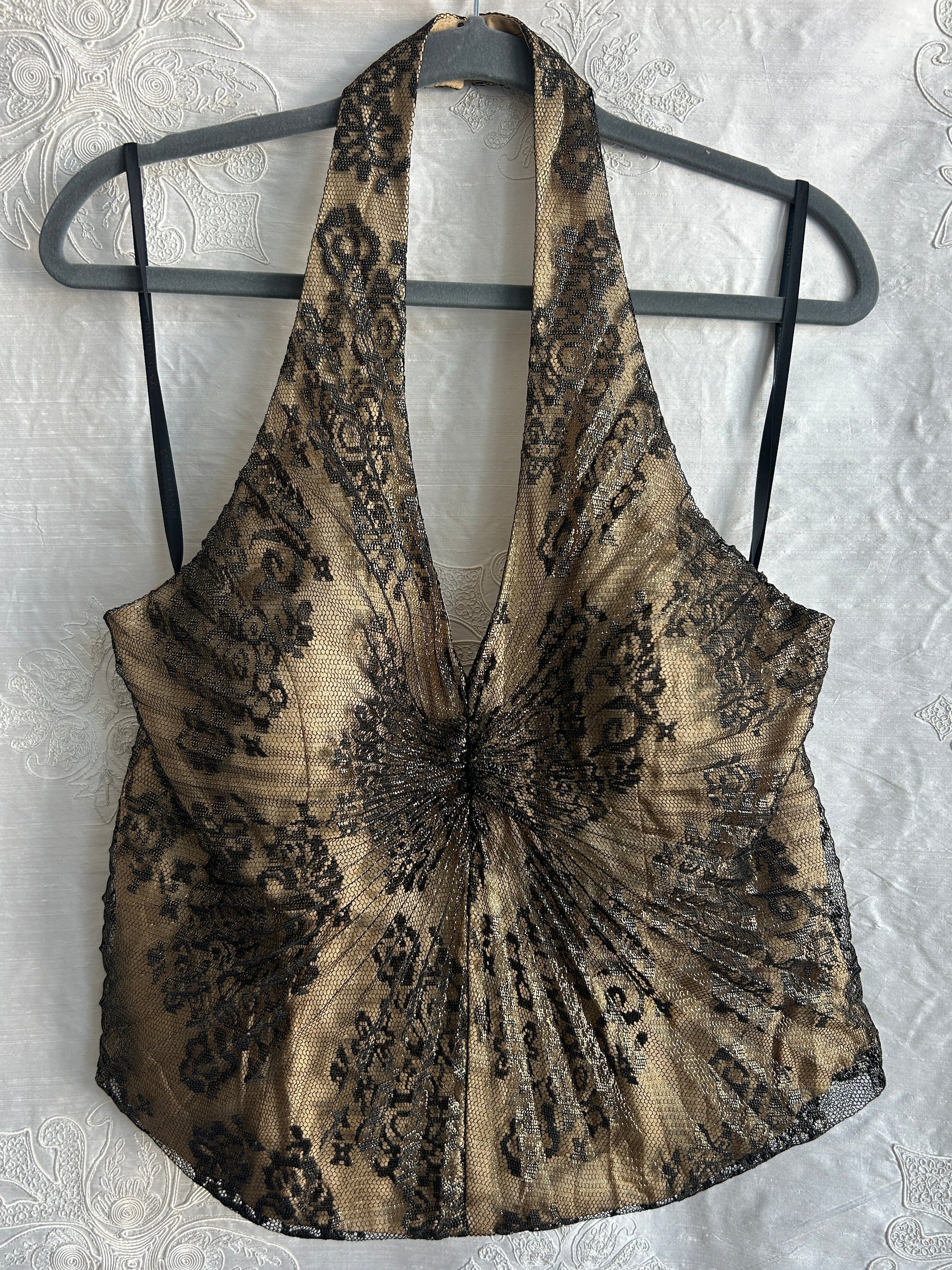 Black & Gold Pleated Foil Lace Halter