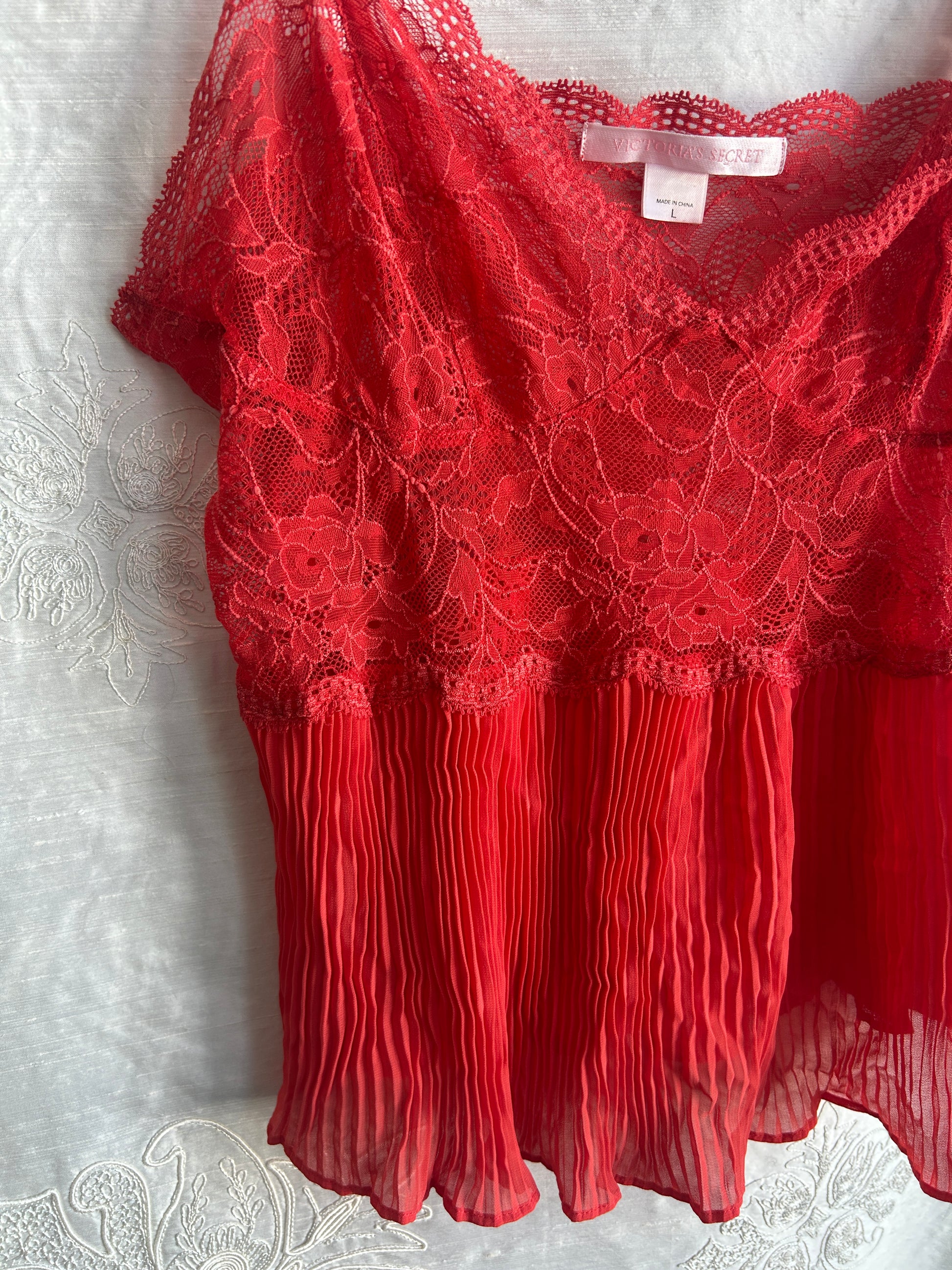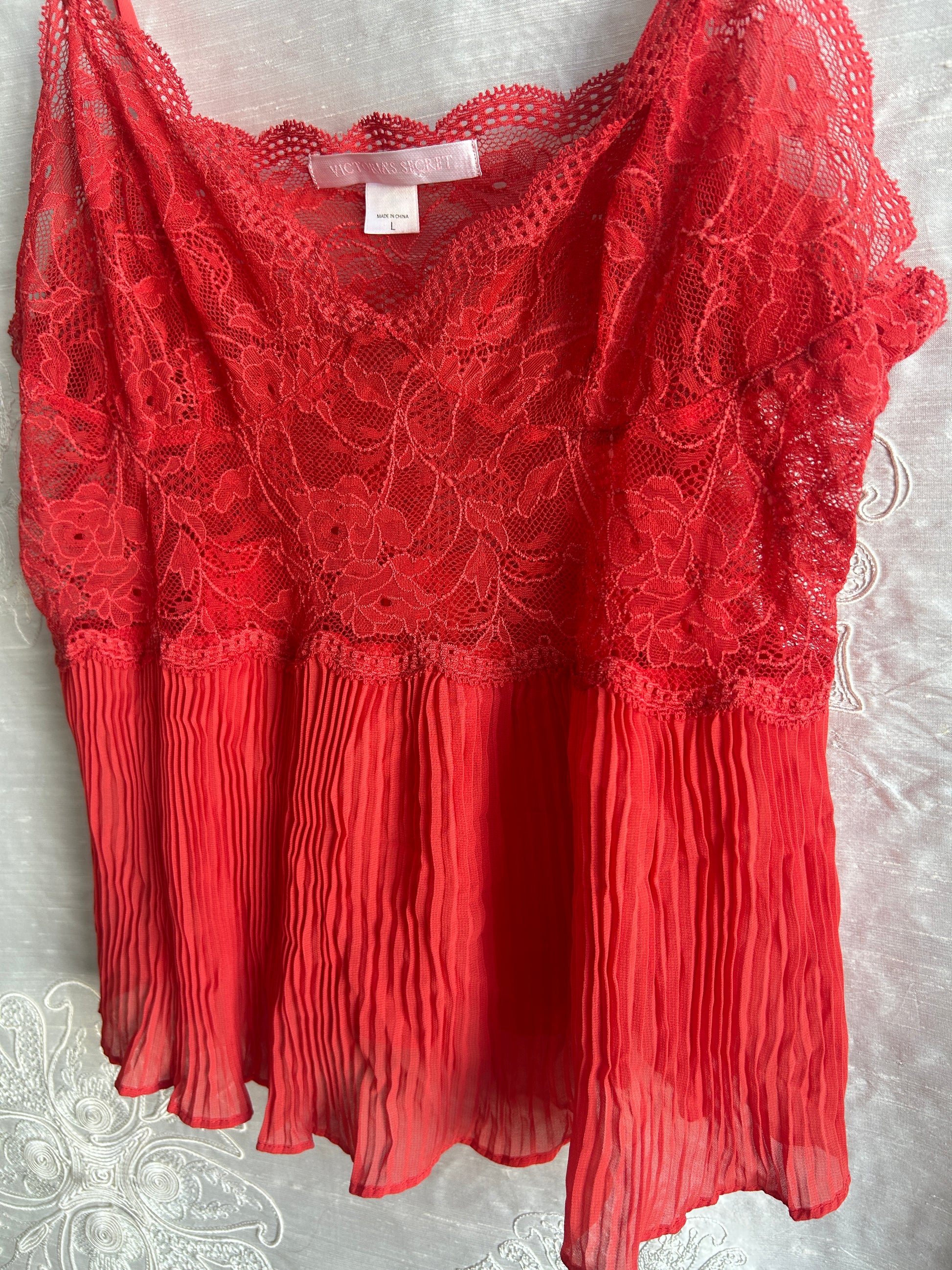 Coral Victoria's Secret Lace + Pleated Cami