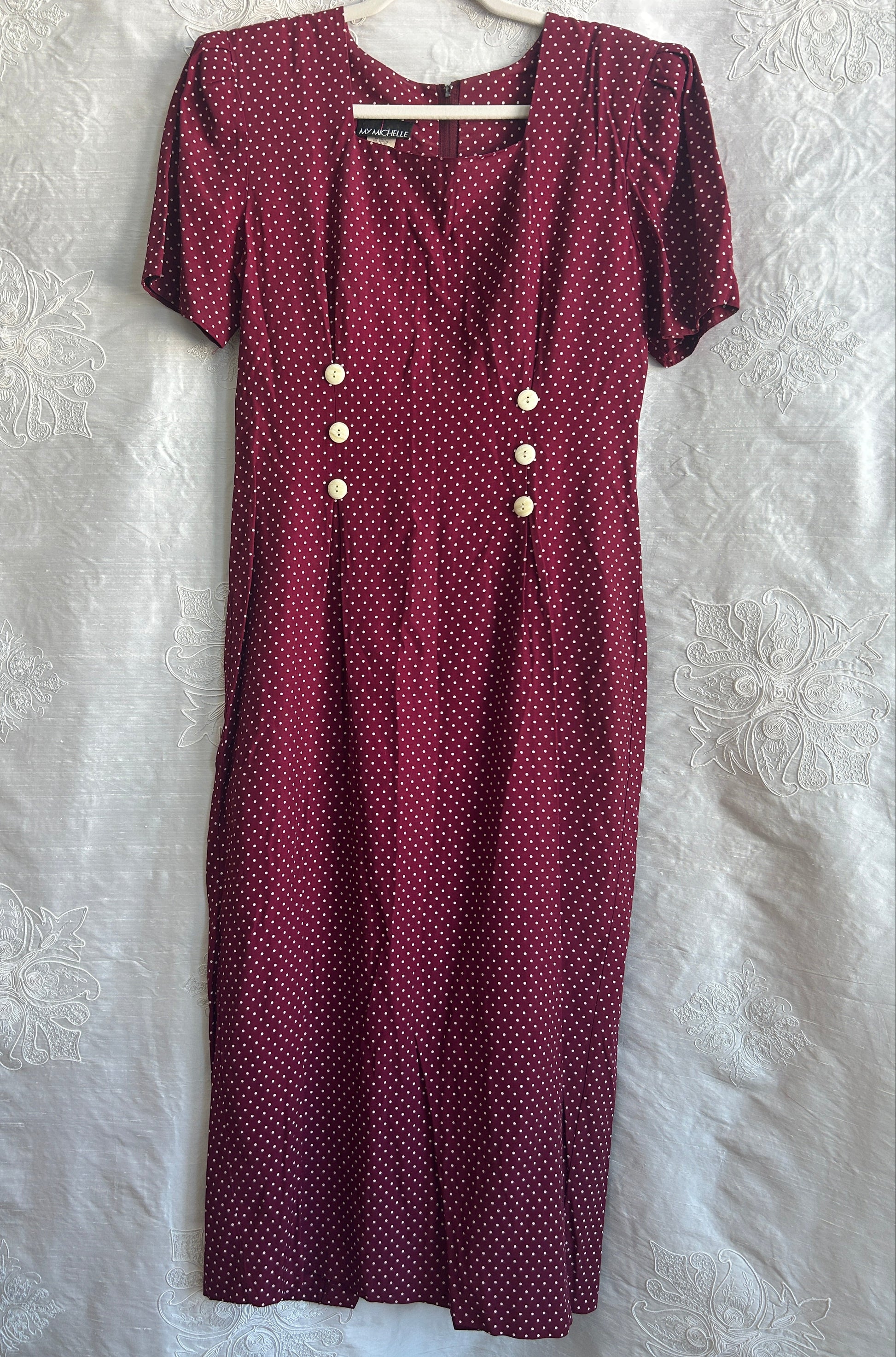 Vintage Burgandy Polka Dot Dress