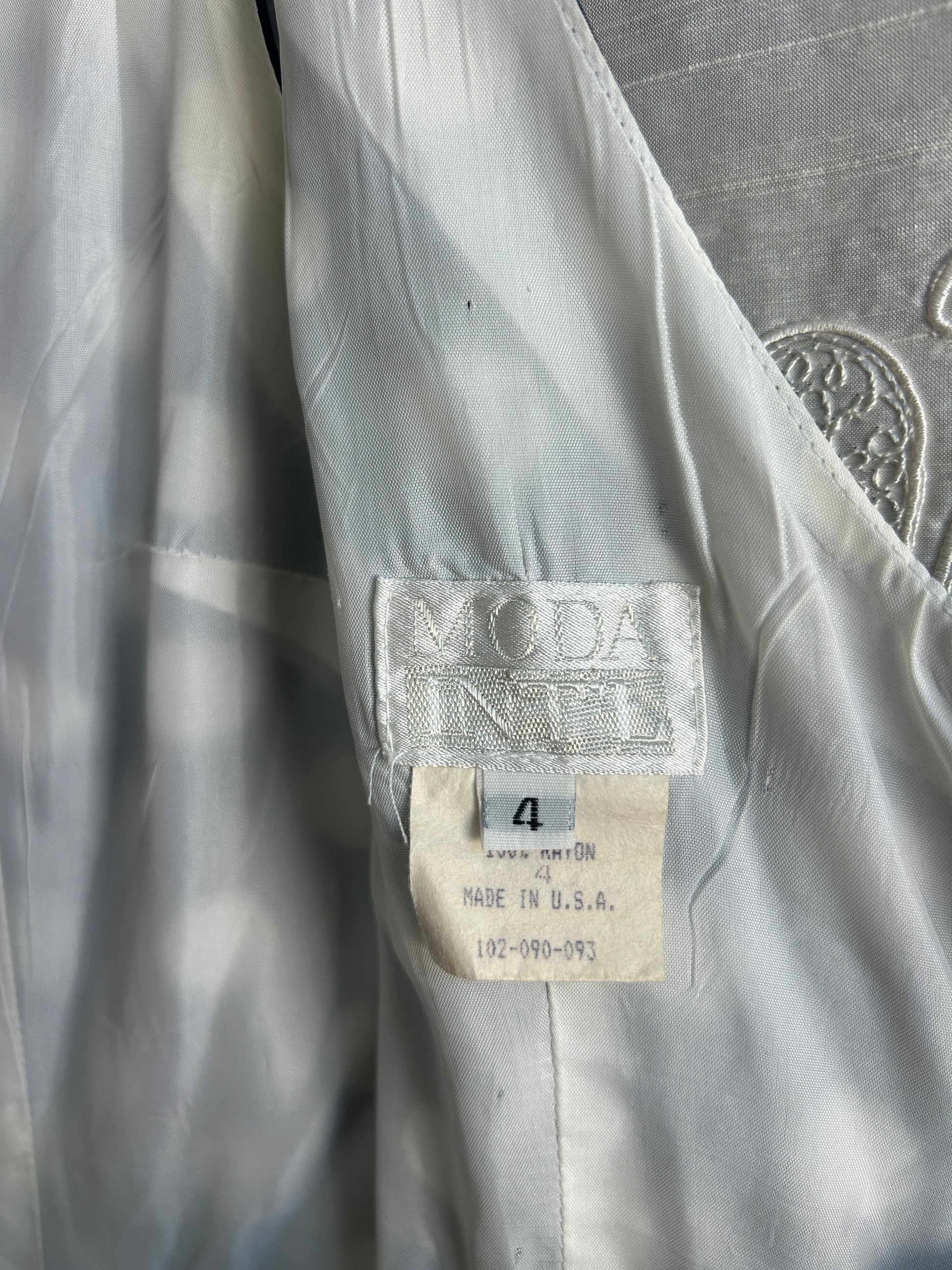 • Flaws / Notes: Minor discoloration/Pit stain (shown in picture). Made in USA. Paper tag; true vintage. Back zipper.
