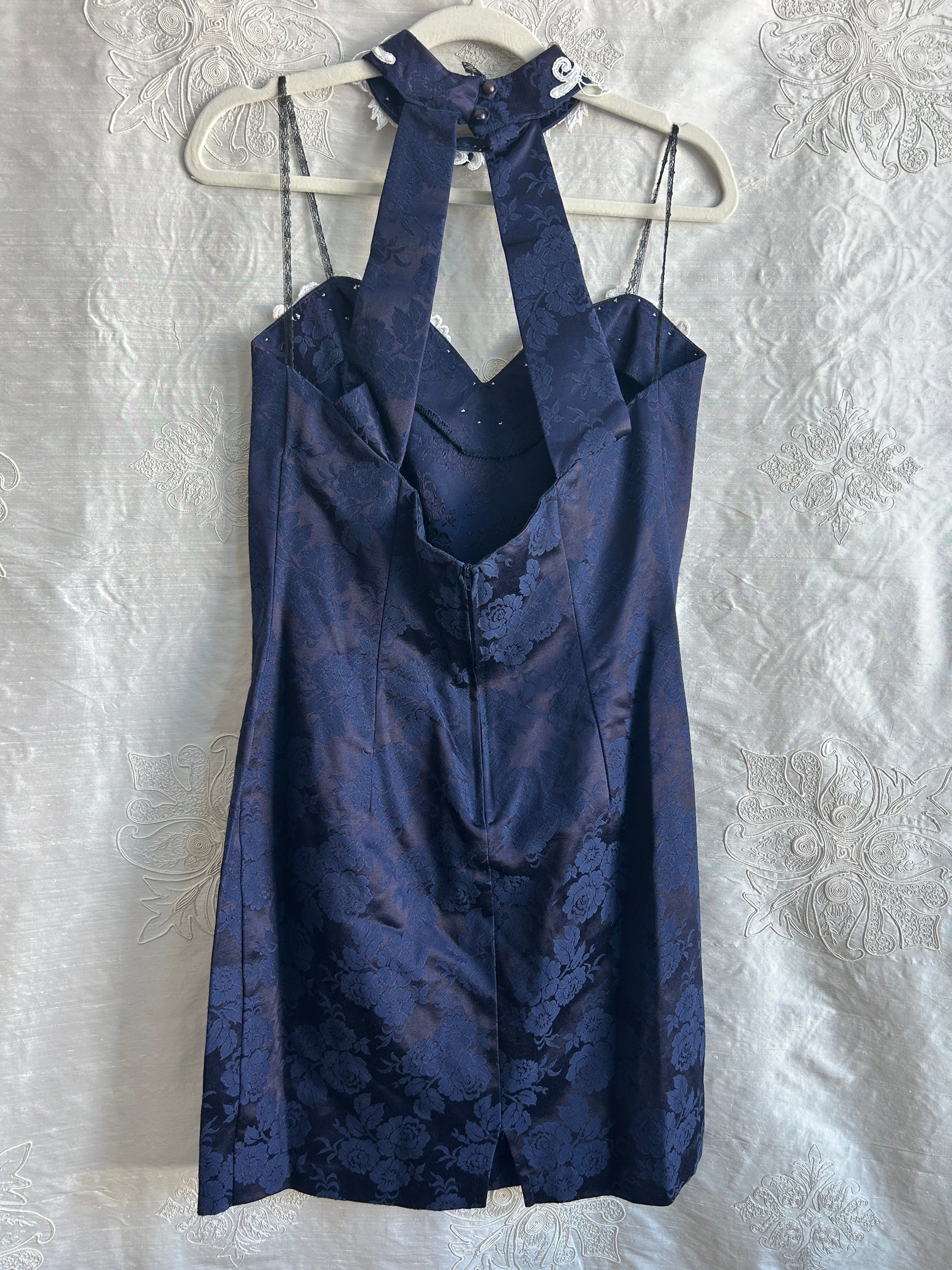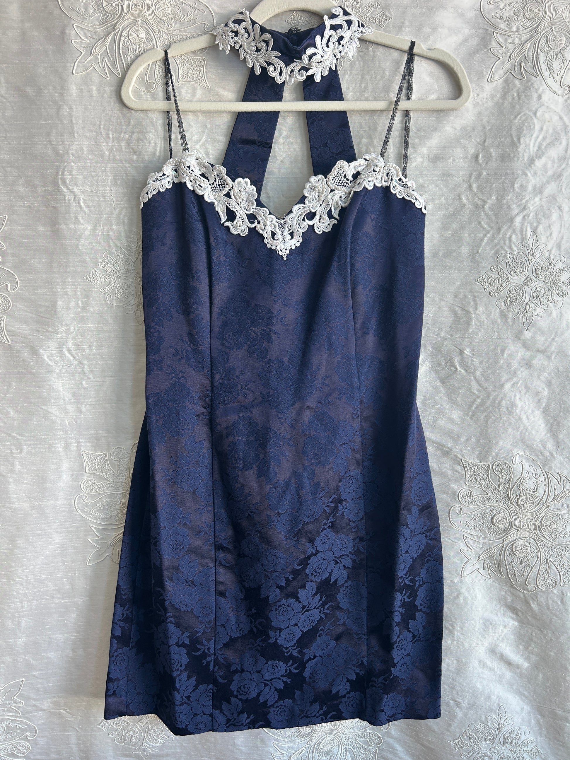 Vintage Roberta Navy Blue & White Lace Mini Dress