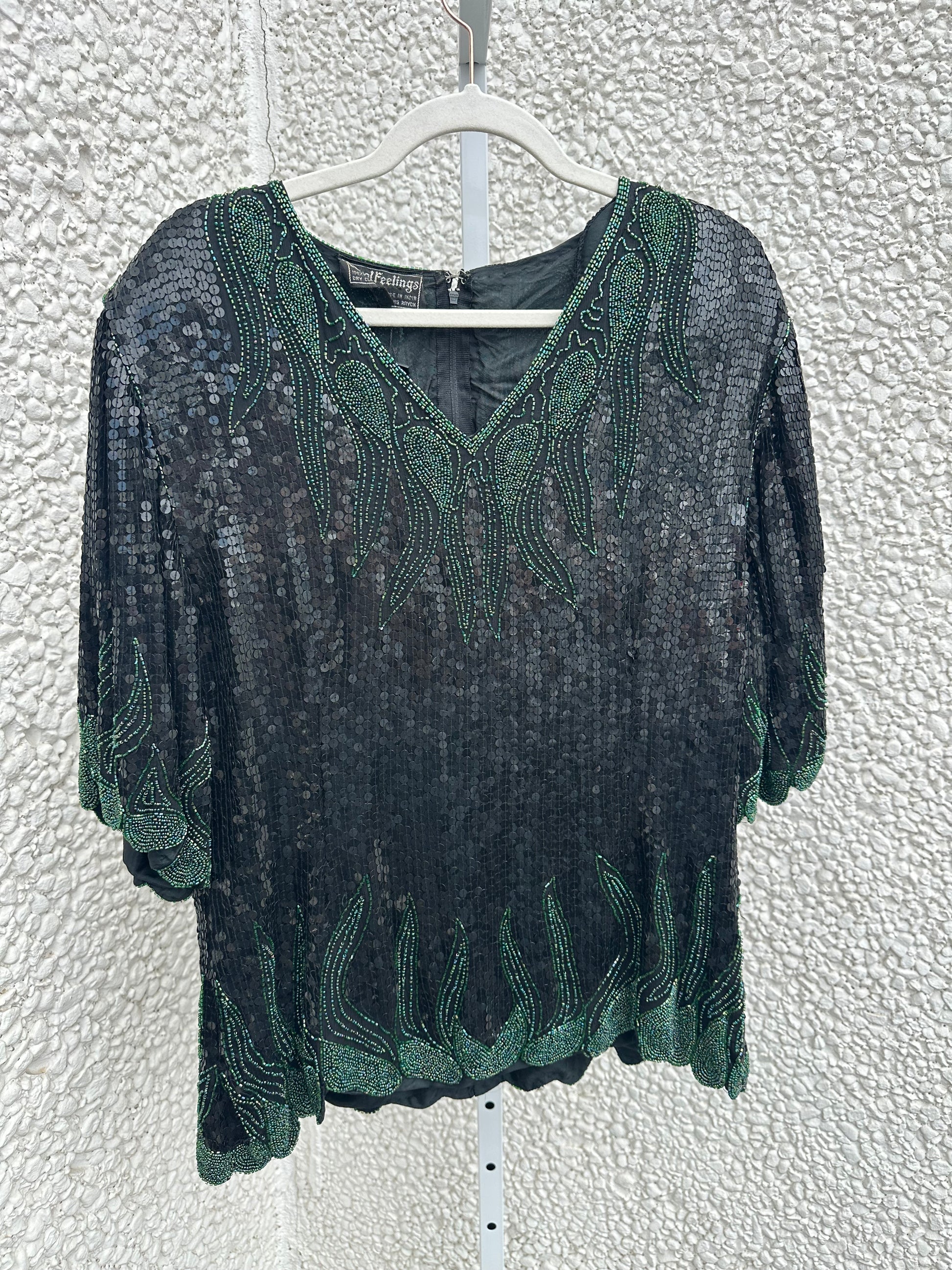 notes: fits oversized, no stretch. One strand of sequins missing (shown)